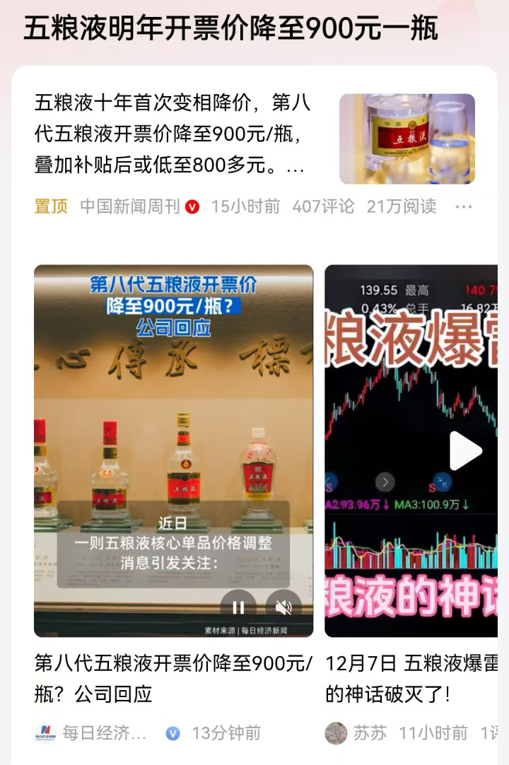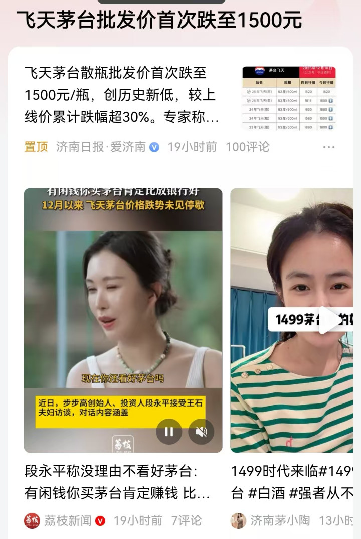 可能民众更想看到的是茅台酒等等,能顺应时代趋势,逐渐调低价格。让真正要喝酒的消费者既可以买到酒,也可以以更实惠的价格喝到酒。现在五粮液率先调整2026年的价格,那么大家认为茅台还能撑多久呢?现在生肖酒下跌更快,全网就看53度飞天茅台的价格走势了。